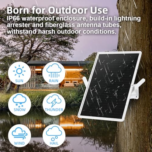 Amplificator WiFi exterior WLAN, repeater și booster solar pe baterie, extender semnal WiFi 2.4GHz până la 100m, 300Mbit/s, compatibil cu dispozitive 2.4GHz