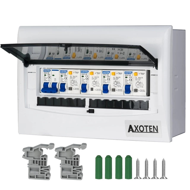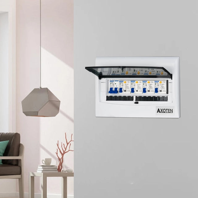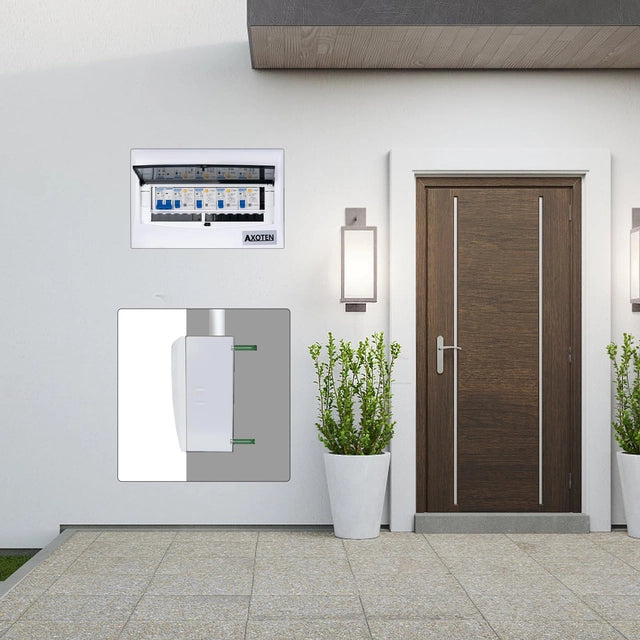 CHENGPI Concealed Distribution Box cu 2P AC Miniature Circuit Breaker si 1P+N Leakage Switch, Cutie de Distributie cu Bara de Nul si Impamantare – 12 Module