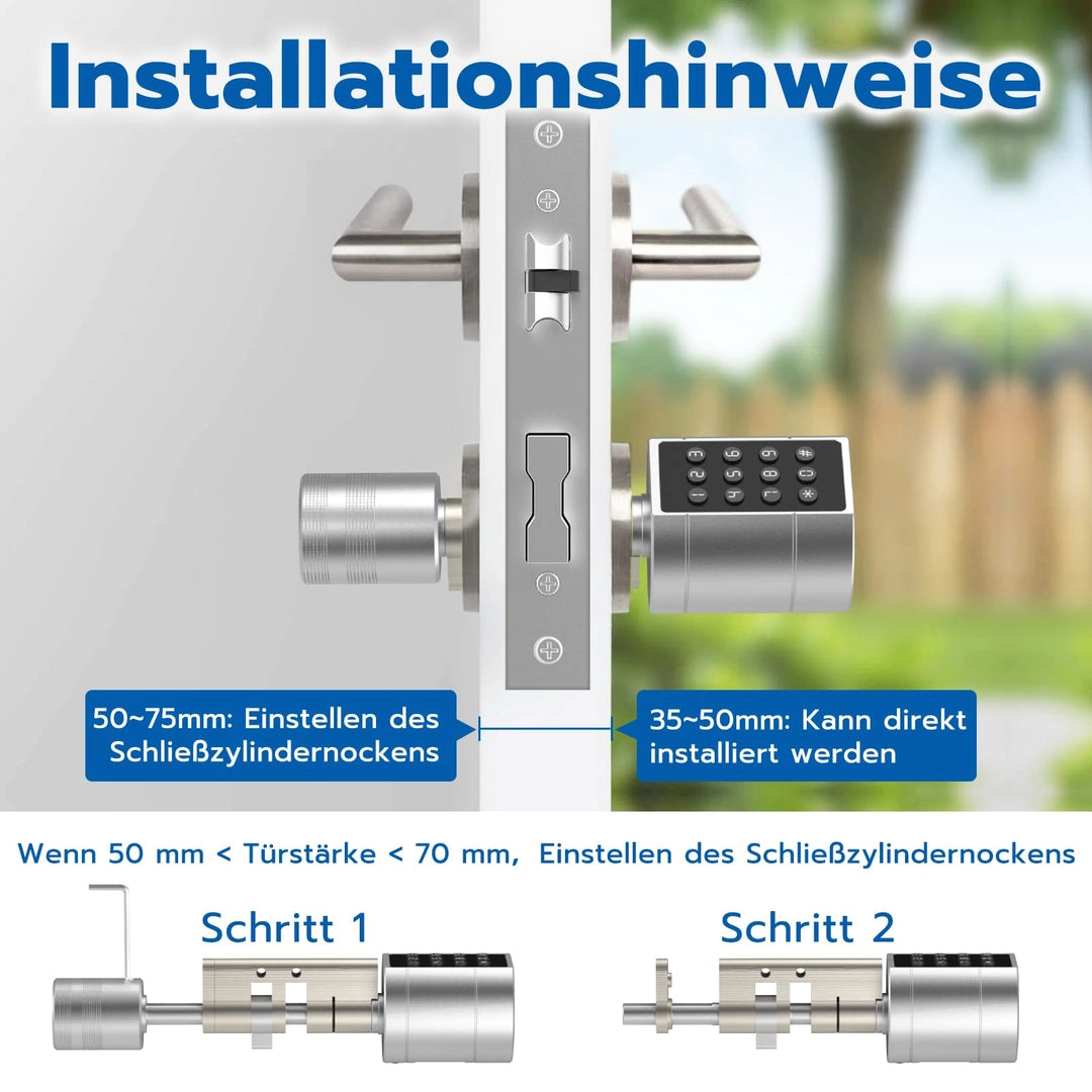 Incuietoare smart Dhiedas pentru usa frontala, cu amprenta, cod numeric, RFID si control prin aplicatie, lungime reglabila 75-100mm, securitate avansata pentru locuinta sau birou.
