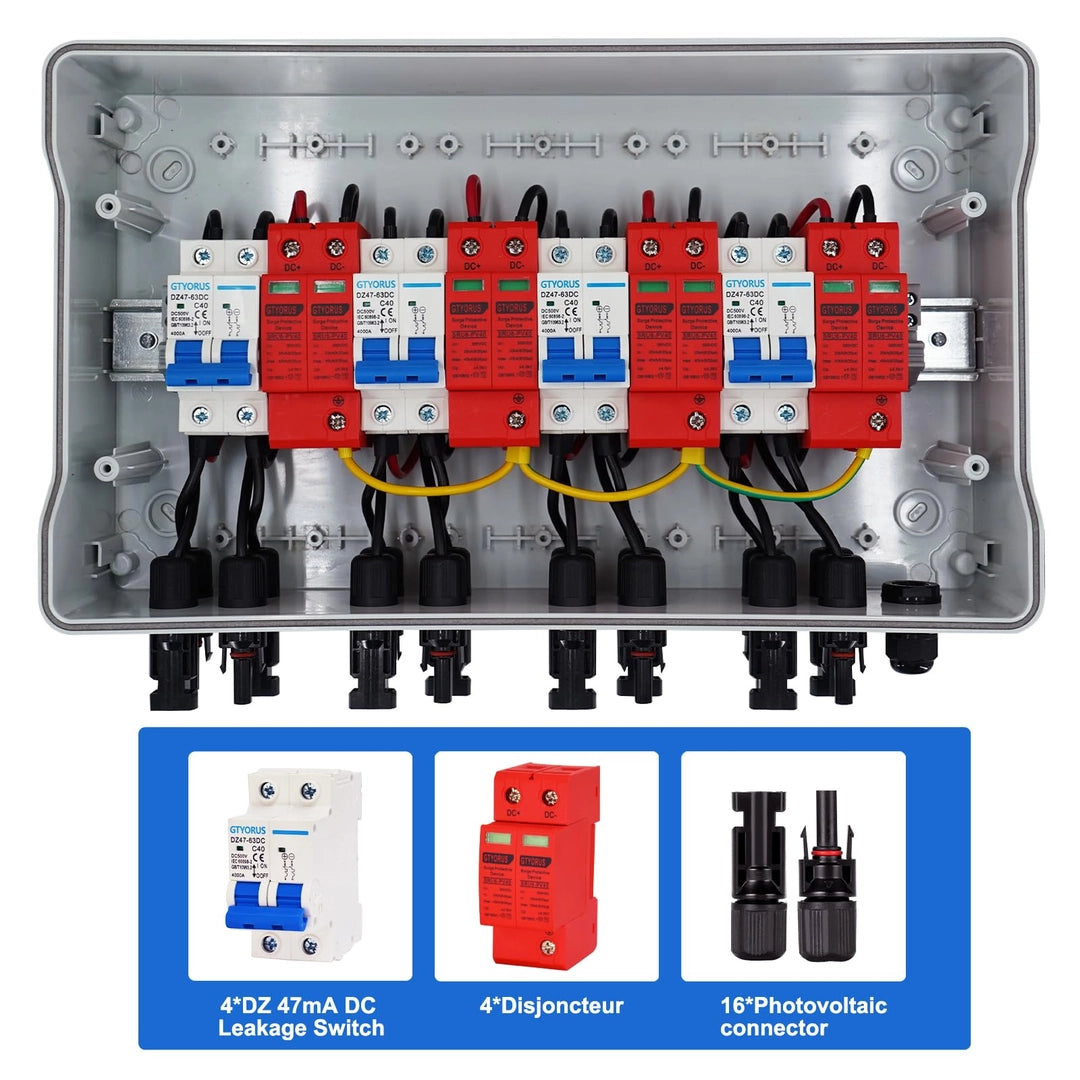 GTYORUS Panou Photovoltaic 4-in-4 DC – Protectie Supratensiune, Intrerupator Solar 500V, Protectie Fulgere si Impamantare, 40A