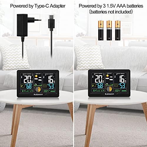 Statie meteo wireless cu senzor exterior Kalawen, ecran color, prognoza, ceas